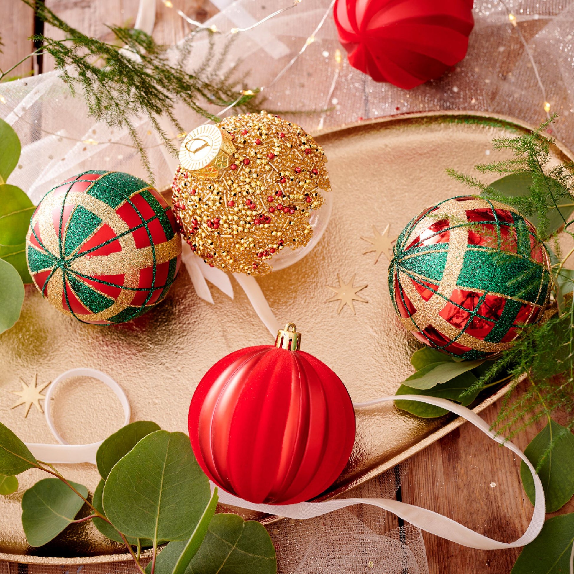 Ge din julgran en tidlös och elegant look med vår rutiga julgranskula i rött, grönt och guld, i matt finish. Kulan kombinerar de klassiska julfärgerna med ett charmigt rutmönster och skapar en hemtrevlig atmosfär.
