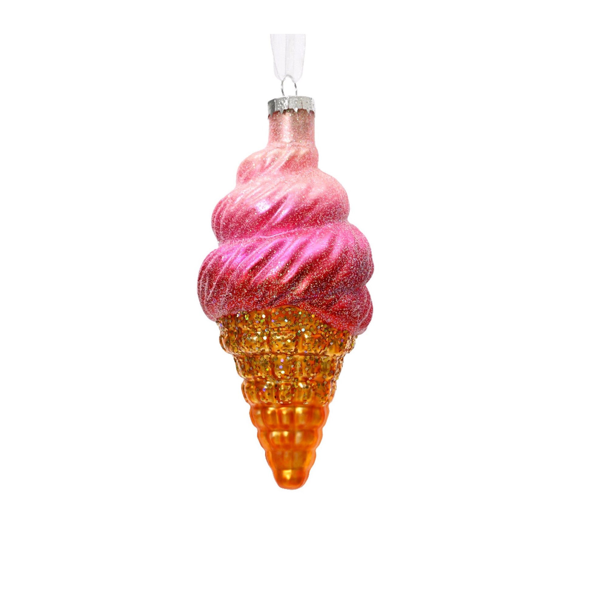 Vår julgransprydnad formad som en glasstrut i rosa och guld tillför en färgstark och livlig känsla till din juldekoration. Den unika och glittrande dekorationen ger din gran en rolig och festlig touch och skapar en atmosfär av glädje och fantasi. Perfekt för att ge din julgran en färgstark och fräsch look som inte följer det klassiska mönstret.