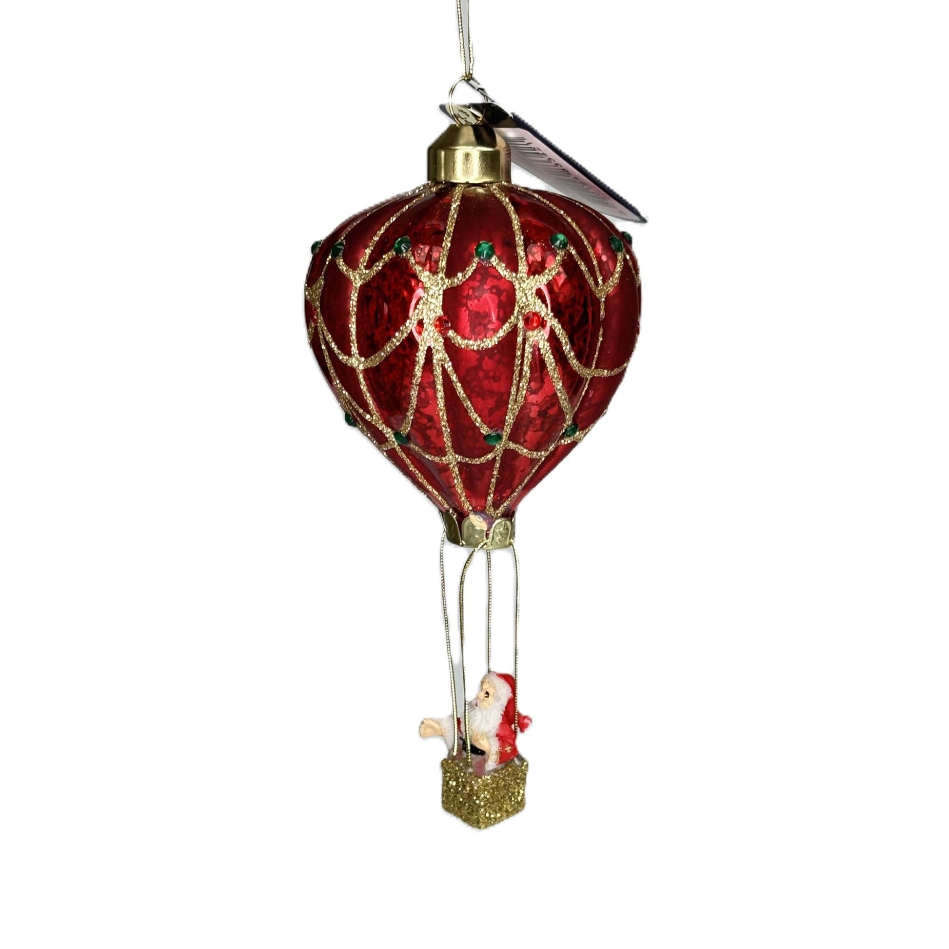 Den här charmiga och fantasifulla dekorationen skapar en atmosfär av äventyr och glädje och är perfekt för att tillföra en lekfull och förtrollande touch till din juldekoration. Med en tomte som svävar högt i en luftballong kommer din gran att sprida julens magi och skapa minnen för både stora och små. Färgerna går i Christmas Red, Light Gold och Glitter. Lyft granen med den här prydnaden eller låt den sväva i ett fönster.