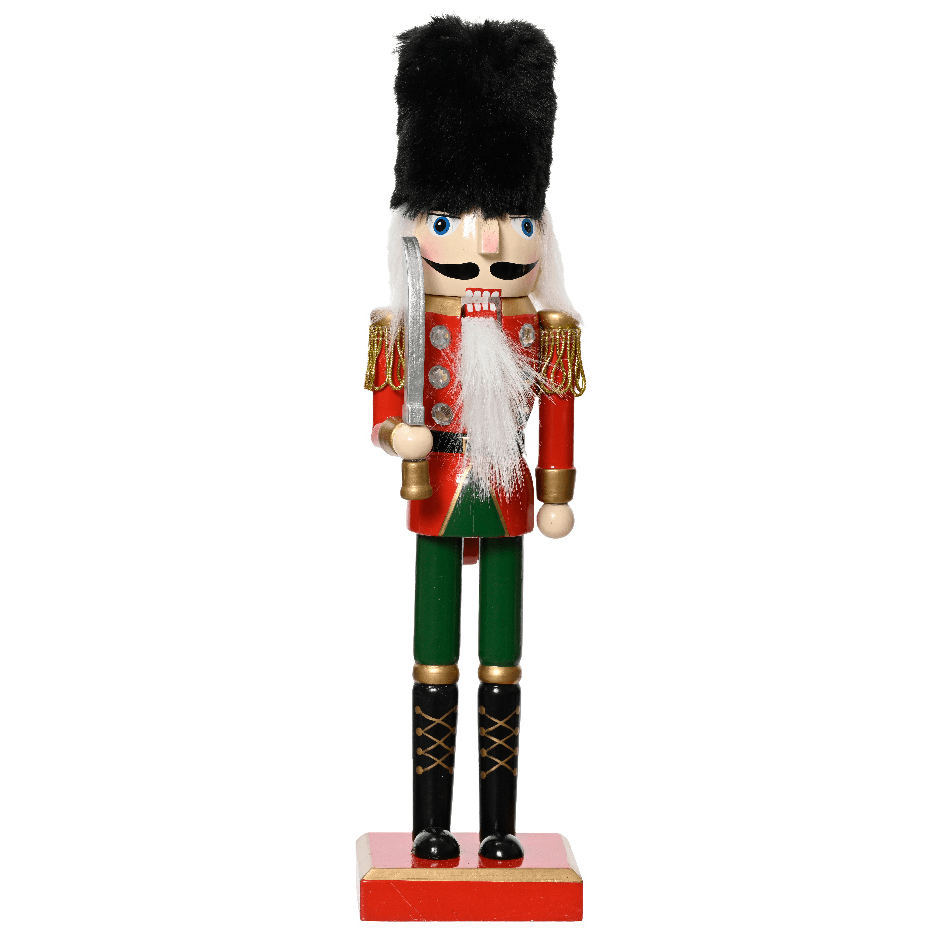 Vår Nötknäppare är en ikonisk julfigur. Med sin svarta hatt, röda uniform och gulddetaljer, samt med ett svärd i handen, är denna nötknäppare en symbol för julens magi och traditioner.