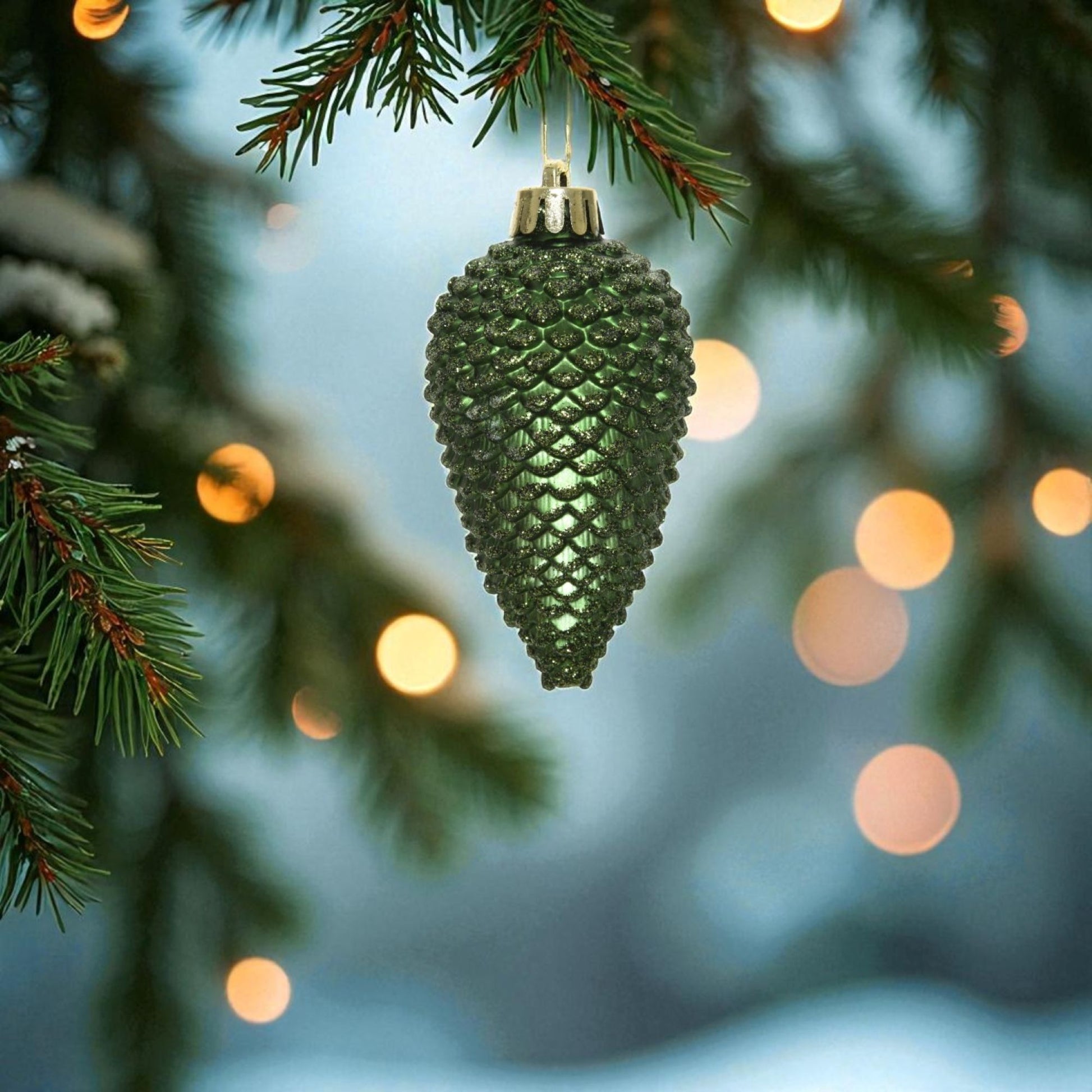 Våra julgransprydnader erbjuder en naturnära design med sina naturliga kottformer och den djupa gröna nyansen. Den frodiga färgen, inspirerad av vintergrönska, kombinerad med de autentiska formerna av kottar, skapar en harmonisk och fräsch atmosfär som passar perfekt till julens glädje och traditioner.