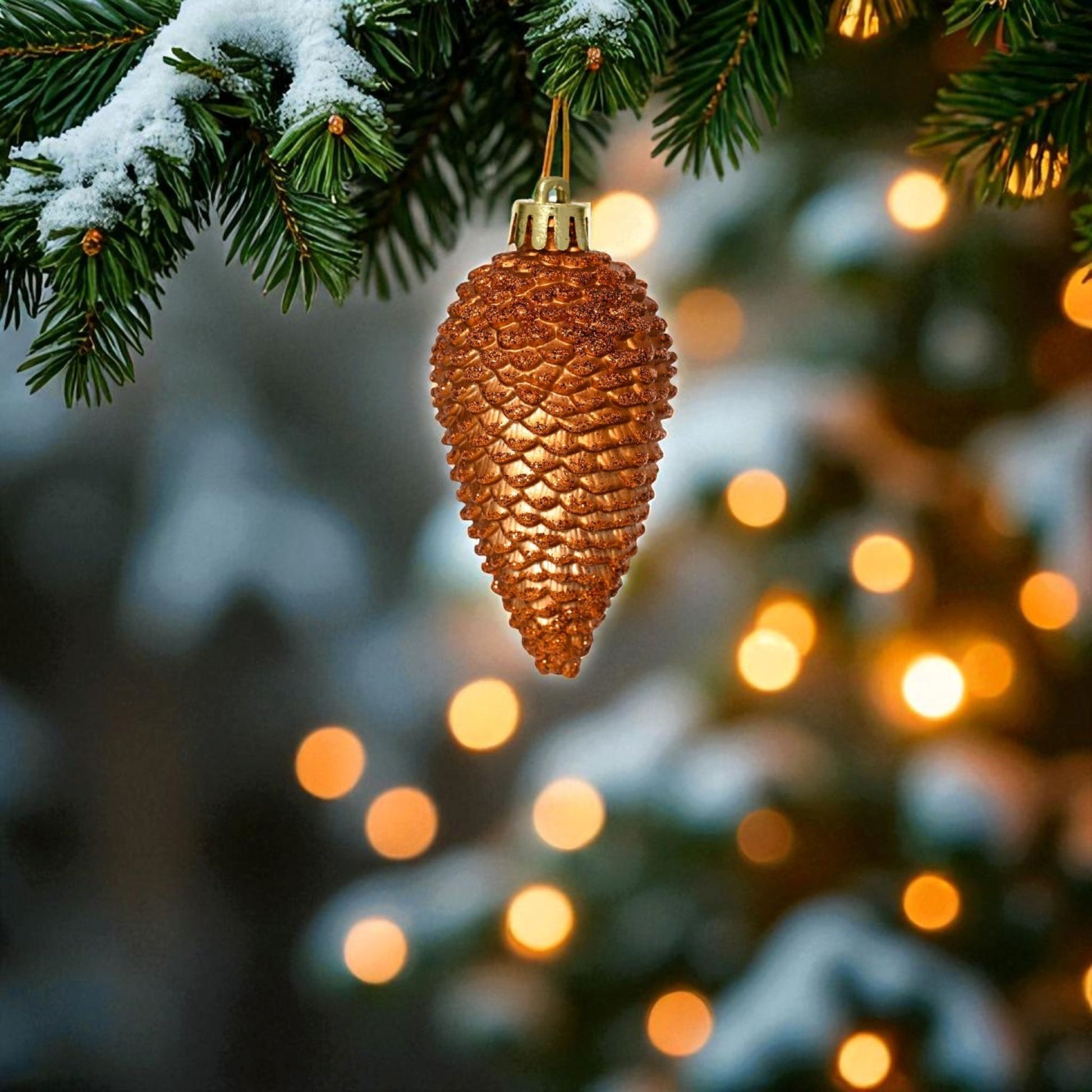 Våra julgransprydnader erbjuder en värmande design med sina naturliga former och den rika nyansen av varm cider. Den gyllene färgen, inspirerad av värmande drycker och höstens skördetid, kombinerad med de autentiska formerna av kottar, skapar en harmonisk och fin atmosfär som passar perfekt till julens glädje och traditioner. Denna design och nyans skapar en visuell upplevelse som fångar julens magi och sprider elegans och värme.