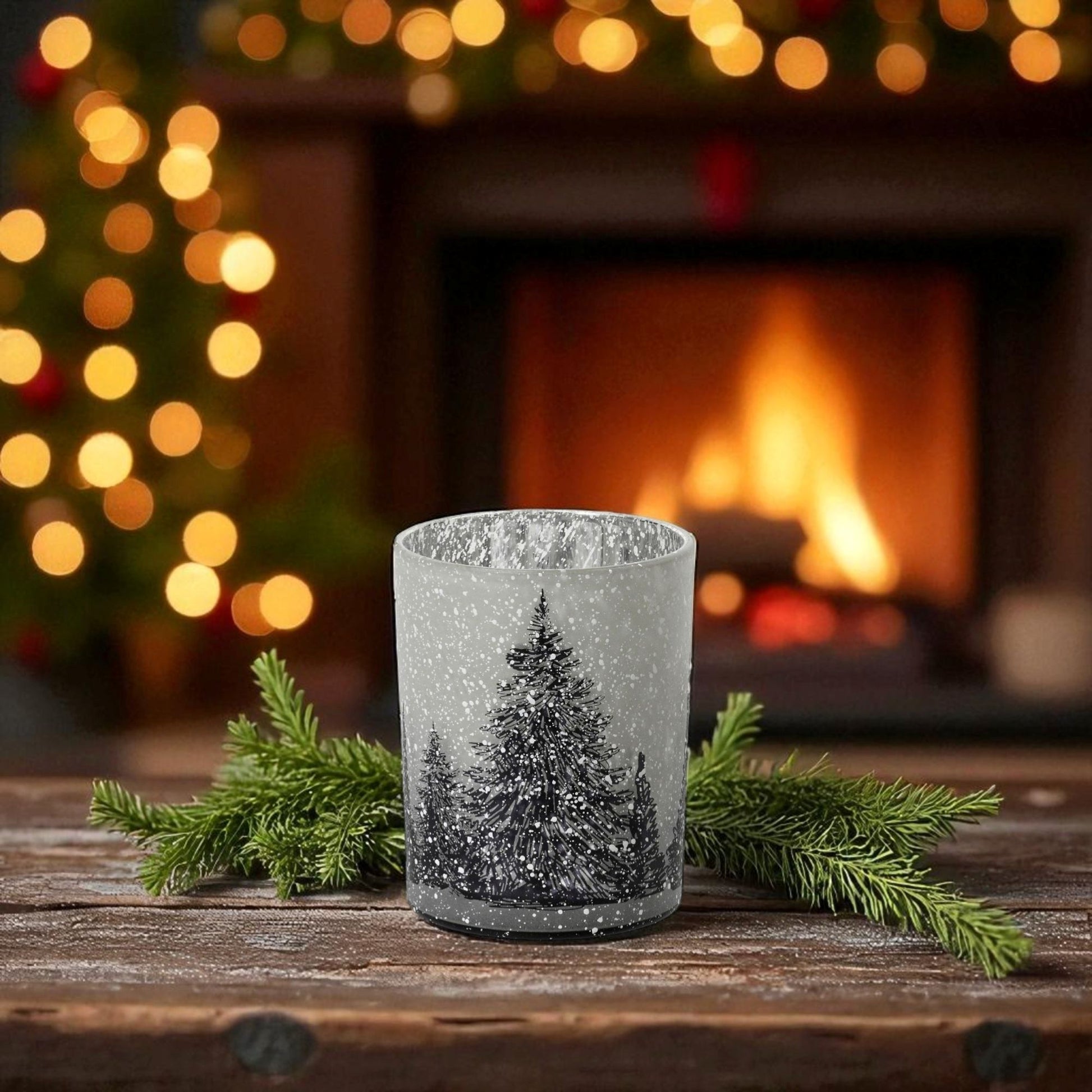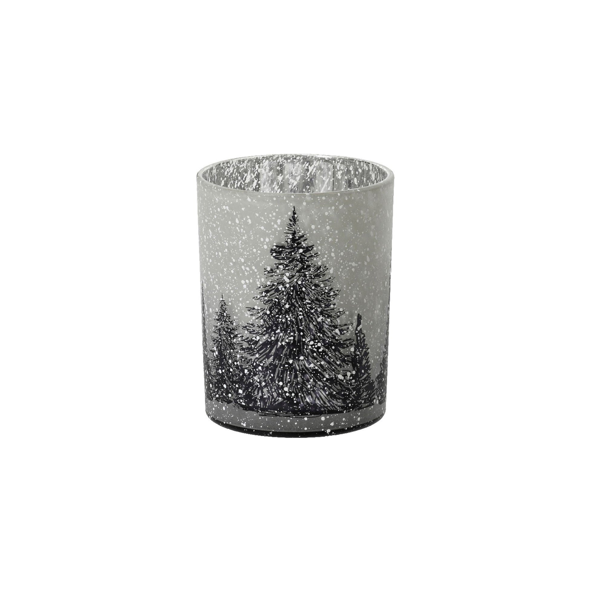 Vår ljuslykta i glas är utsmyckad med motiv av granar och snöfall som tar dig direkt till en vinterskog. När ljuset tänds inuti lyktan, lyser de vackra motiven upp och skapar ett spel av skuggor och ljus som sprider en känsla av lugn och frid. Den frostade ytan på glaset förstärker skenet och skapar en stämningsfull atmosfär.