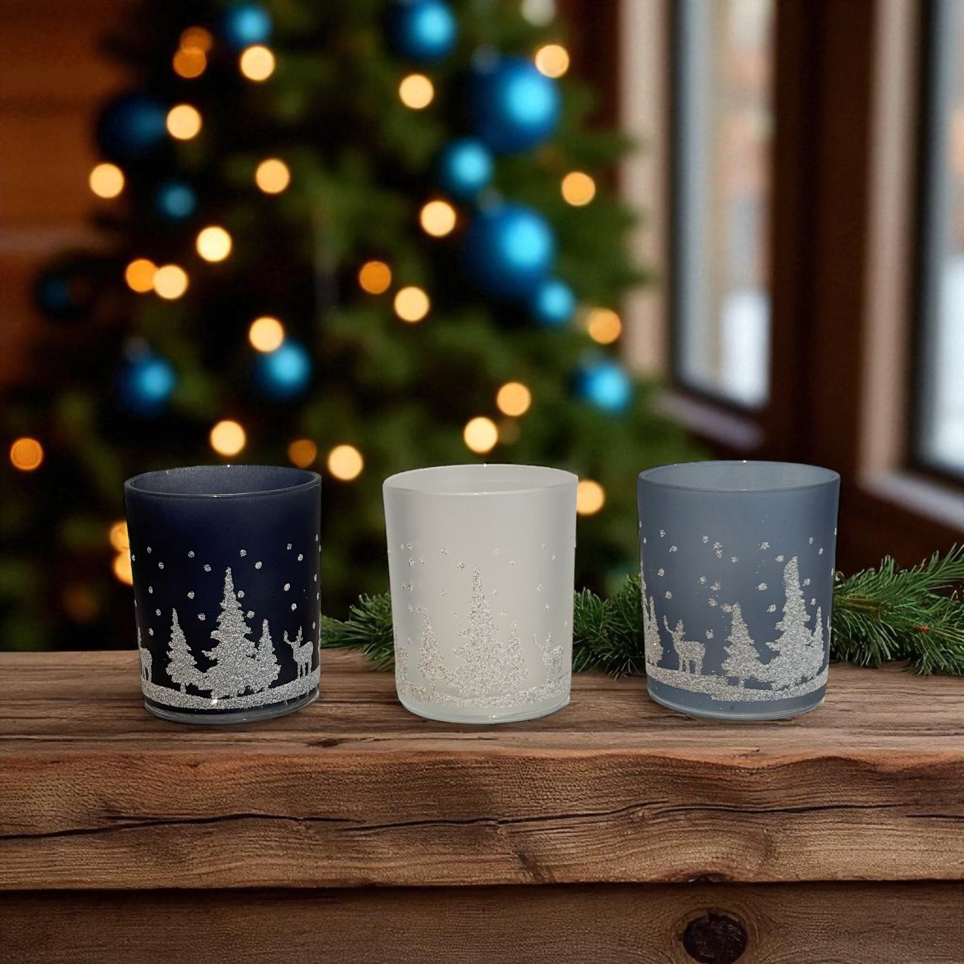Vårt set med tre ljuslyktor i nyanserna Night Blue, Winter Sky och Winter White med motiv av glittriga granar, renar och snöfall är en fin inredningsdetalj oavsett vart du placerar dem. Skenet genom de vinterinspirerade motiven sprider ett mjukt och behagligt ljus som gör varje kväll till en mysig och avslappnande upplevelse.