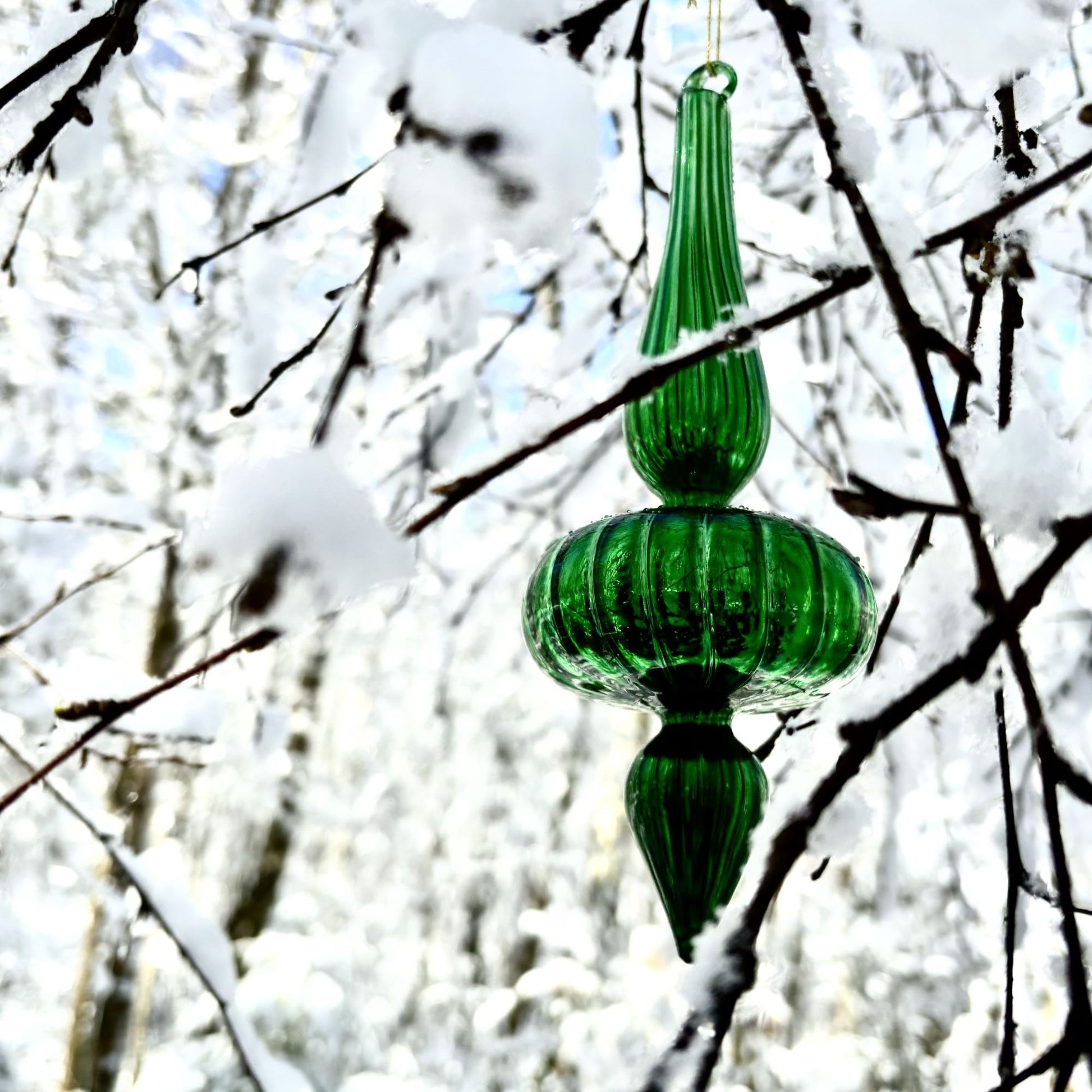 Vår gröna, glansiga spira ger en klassisk och förfinad touch som kompletterar alla typer av juldekorationer, från traditionella röda och guldiga kulor till moderna och minimalistiska ornament. Den djupa gröna färgen är både rik och livfull, vilket ger din julgran en naturlig och elegant känsla.