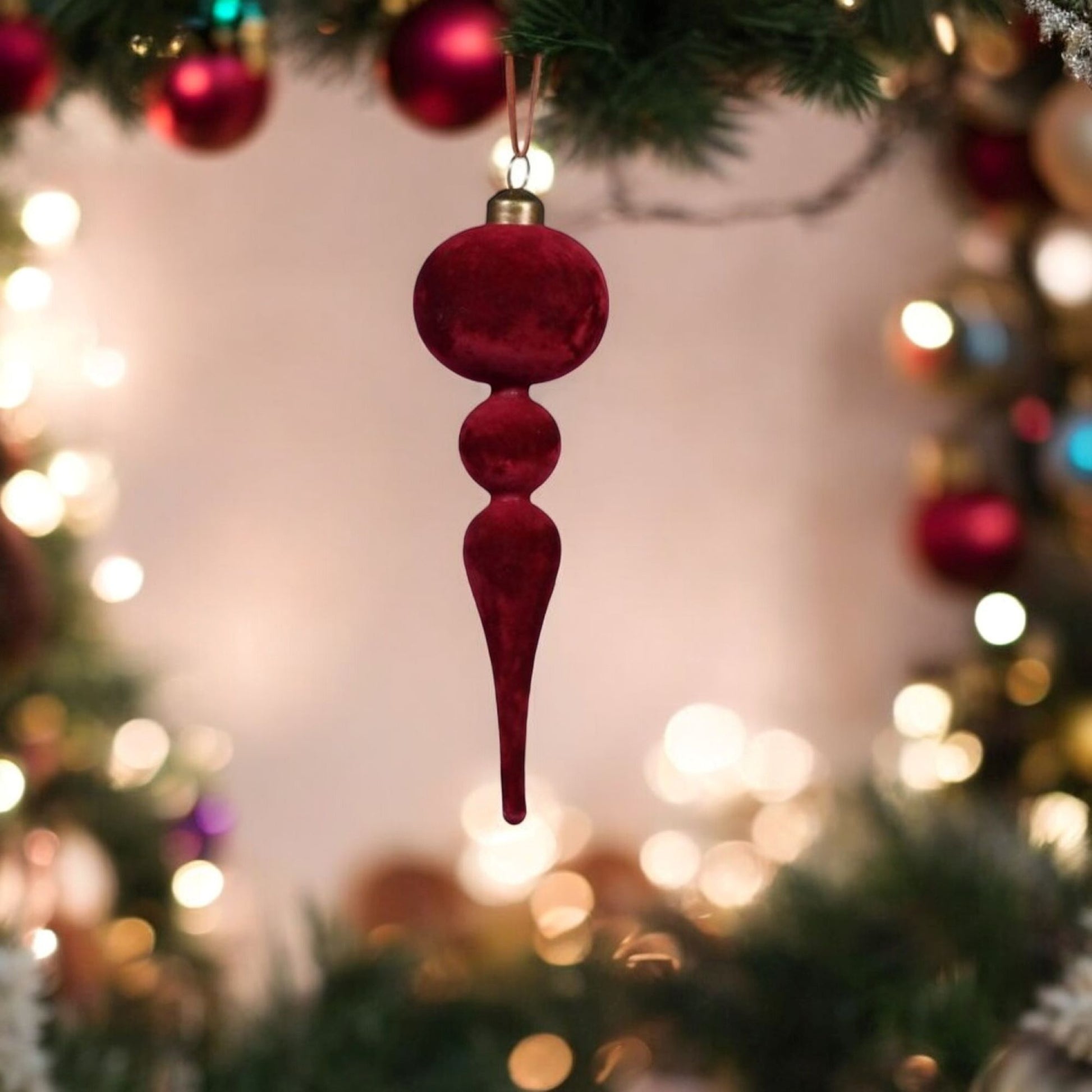 Förhöj din julgran med en extra touch av elegans och festlighet med vår julgransprydnad i form av en röd spira i sammet. Denna vackra spira är designad för att skapa en stämningsfull effekt och ger din gran en stilig och sofistikerad look.